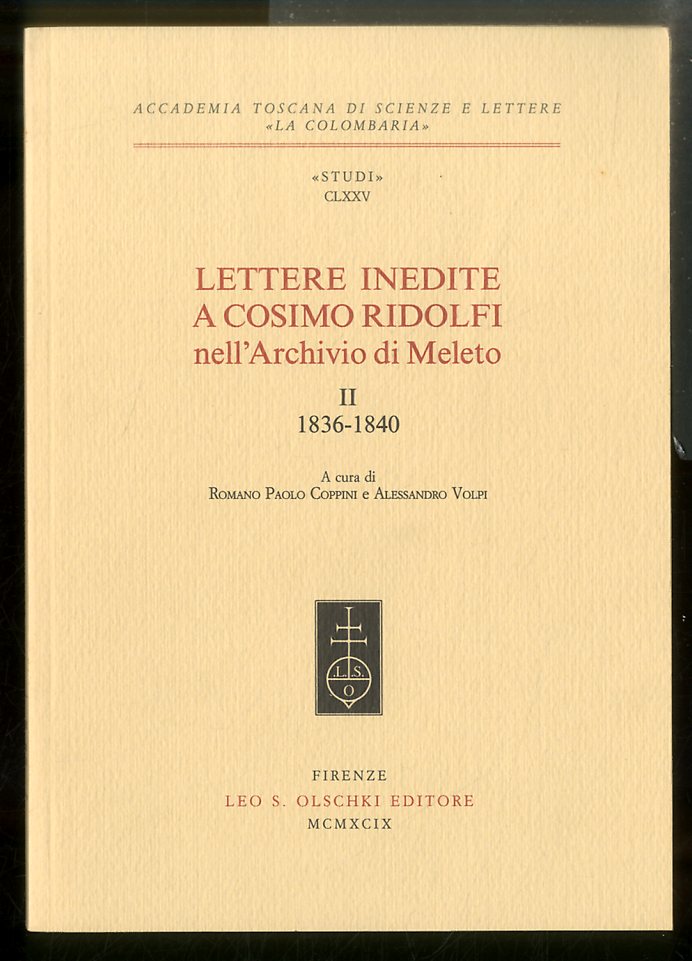 LETTERE INEDITE A COSIMO RIDOLFI NELL’ARCHIVIO DI MELETO VOL. II 1836/1840 – LS